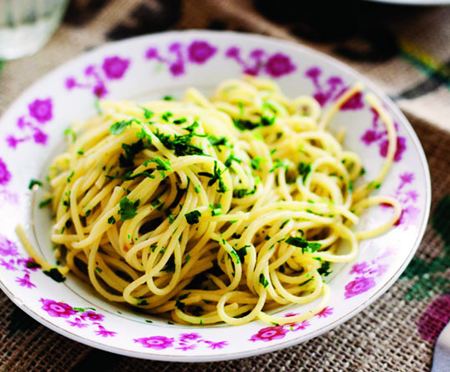 Spaghetti với tỏi phi và dầu ô-liu