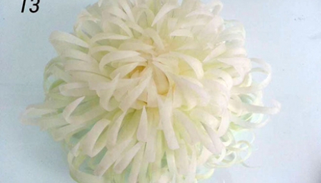 Chỉ bằng vài thao tác đơn giản, bạn có thể làm nên một bông cúc đại đóa rất đẹp từ một trái đu đủ xanh.