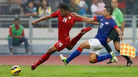 Trên sân Bukit Jalil, đương kim vô địch (ĐKVĐ) Malaysia đánh mất lợi thế sau khi để tiền đạo Dangda chọc thủng lưới ở phút 76 ấn định trận hòa 1-1 ở bán...