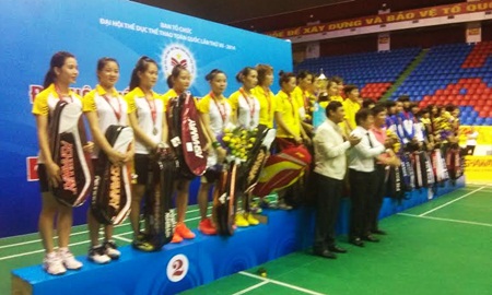 Chung kết nội dung đồng đội môn cầu lông tại Đại hội TDTT toàn quốc lần thứ VII Thành phố Hồ Chí Minh và Bắc Giang giành ngôi vô địch