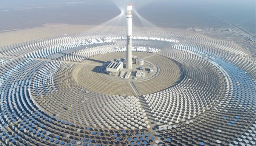 Tháp muối nóng chảy cao 220 m nhô lên giữa sa mạc Gobi ở Hami, Tân Cương, bao quanh bởi 14.500 kính định nhật giúp sản xuất nhiệt điện, đáp ứng nhu cầu...