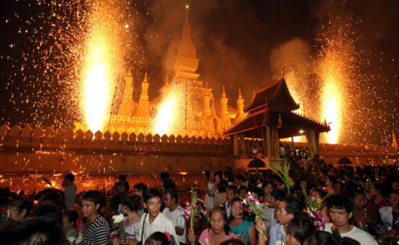 Vào những ngày này ở thủ đô Vientiane, Lào đang diễn ra lễ hội Boun Thatluang quanh ngọn tháp Thatluang, biểu tượng cho Phật giáo và văn hóa tâm linh...