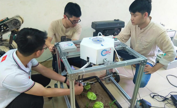 Sử dụng công nghệ học sâu, nhóm sinh viên Bách khoa Hà Nội chế tạo robot diệt cỏ có khả năng tự hành và chọn gốc cỏ để xịt thuốc.