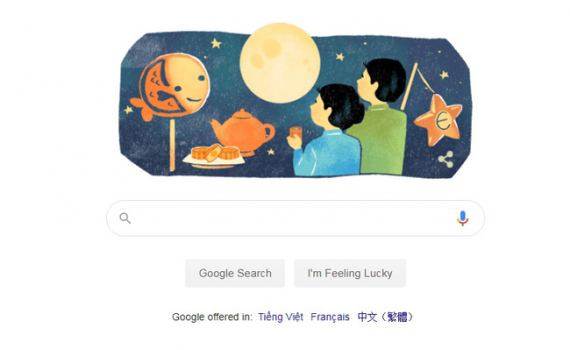 Google gửi lời chúc mừng Tết Trung thu tới người dùng Việt Nam bằng một doodle đặc biệt trên trang chủ.
