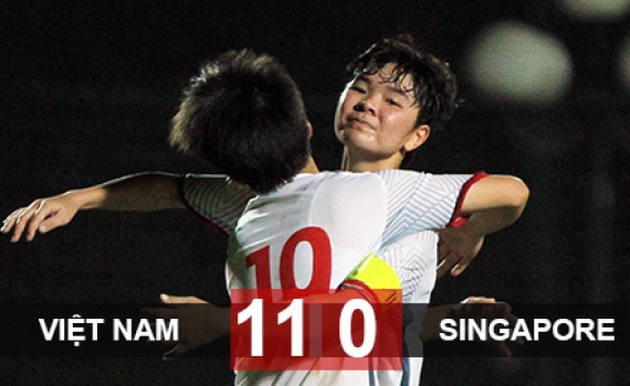 Chiến thắng 11-0 trước U19 nữ Singapore giúp U19 nữ Việt Nam tạm vượt lên U19 nữ Jordan nhờ hơn về hiệu số bàn thắng bại.