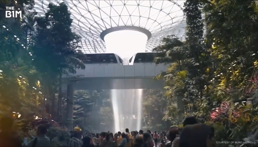 Cấu trúc vòm Jewel ở sân bay Changi với thác nước nhân tạo nổi tiếng có chi phí xây dựng gần bằng tòa nhà cao nhất thế giới.