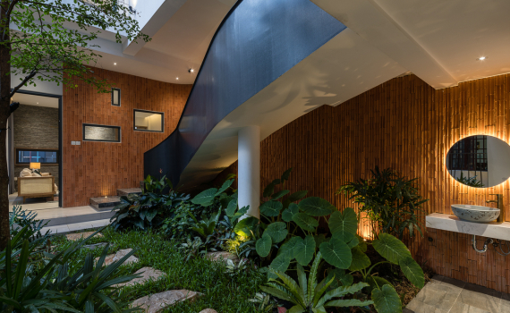 Dự án được thiết kế để tạo ra một không gian yên tĩnh giữa đô thị.Nhà có nhiều chức năng như nhà hàng chay, homestay, khu thiền.