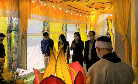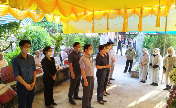 Đồng chí Trần Thị Bích Hằng, Phó Chủ tịch UBND tỉnh thăm, động viên gia đình cán bộ ngành Y đang ở tuyến đầu chống dịch không thể về chịu tang mẹ
