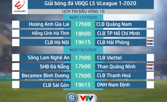 Lịch thi đấu và trực tiếp vòng 10 V.League 2020: CLB Hà Nội – CLB Hải Phòng, SHB Đà Nẵng – Than Quảng Ninh…