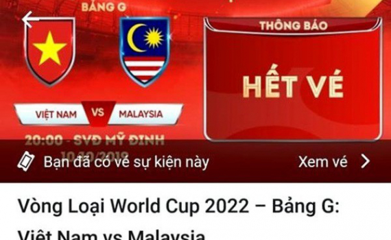 Theo thông tin từ phía Liên đoàn Bóng đá Việt Nam (VFF), toàn bộ vé xem trận Việt Nam gặp Malaysia bán qua hình thức trực tuyến đã được bán hết sau ba...
