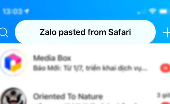 Khi mở Zalo, nhiều người dùng iOS 14 Beta nhận thấy máy hiện thông báo "Zalo pasted from...", thể hiện ứng dụng đang lấy dữ liệu từ bộ nhớ tạm của...