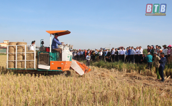 Trình diễn máy thu gom rơm rạ phục vụ chăn nuôi trâu, bò