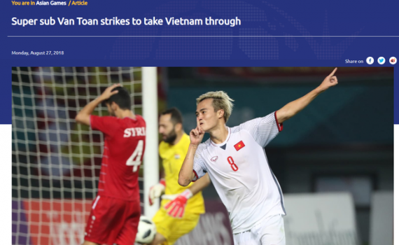 "Siêu dự bị" Nguyễn Văn Toàn ghi bàn phút 108 để đưa Việt Nam vào vòng bán kết ASIAD 2018 là mĩ từ mà trang chủ AFC dành cho ngôi sao số 8.