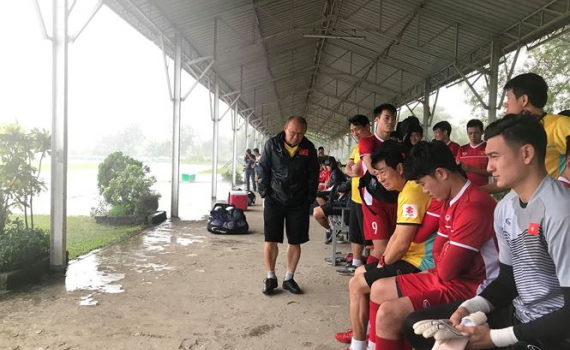 Trận mưa lớn chiều 18/11 đã khiến buổi tập của ĐT Việt Nam tại Yangon bị chậm 50’ so với kế hoạch.
