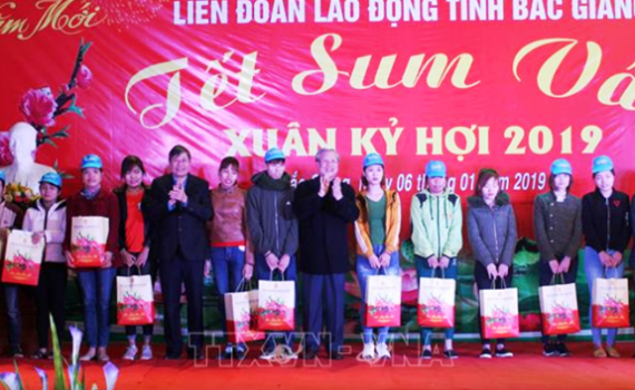 Đồng chí Trần Quốc Vượng thăm, tặng quà công nhân lao động tại Bắc Giang