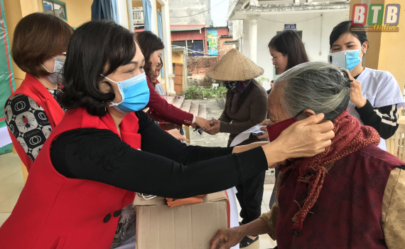 Hội Chữ thập đỏ huyện Kiến Xương phát khẩu trang miễn phí và tuyên truyền phòng chống dịch bệnh