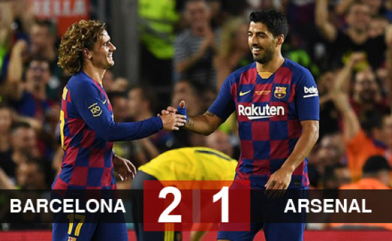 Pha làm bàn ở phút 90 của chân sút vào sân thay người Luis Suarez đã giúp Barcelona ngược dòng giành chiến thắng 2-1 trước Arsenal trong trận đấu tranh...