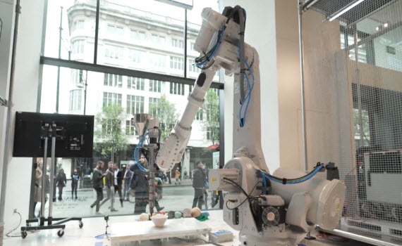 Robot cao 2,4 m dùng để in 3D nhựa tái chế thành vật dụng cá nhân theo yêu cầu của khách hàng.