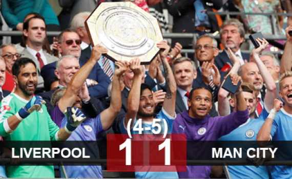 Sau khi hòa 1-1 ở thời gian thi đấu chính thức, Man City đã hạ Liverpool 5-4 trong loạt sút luân lưu cân não để bảo vệ thành công chức vô địch Siêu cúp...