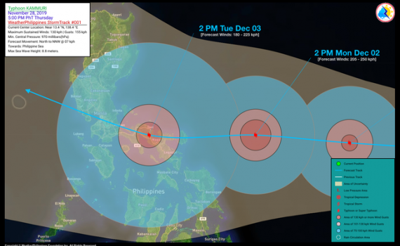 Bão Kammuri dự báo sẽ đổ bộ vào miền Trung Philippines với sức gió giật cấp 17, sau đó di chuyển vào Biển Đông.