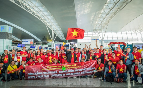 Vào sáng nay (10/12), tại sân bay Nội Bài xuất hiện hàng ngàn cổ động viên mặc áo cờ đỏ sao vàng chờ lên đường sang Philippines "tiếp lửa" cho U22 Việt...