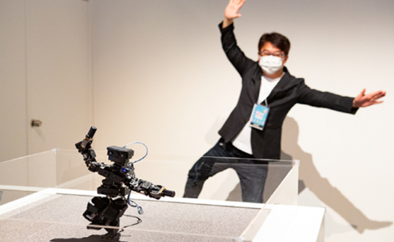 Robot nhỏ EVAL-03 có khả năng bắt chước cử động của người theo thời gian thực, đồng thời luôn giữ thăng bằng tốt.