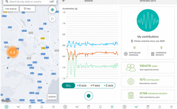 Ứng dụng MyShake cho smartphone có thể ghi lại độ rung lắc, từ đó đưa ra cảnh báo và các thông tin về động đất.