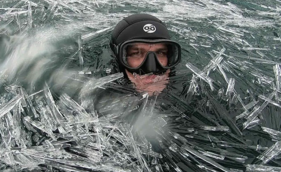 Thợ lặn bơi giữa lớp băng sắc nhọn ở Nga