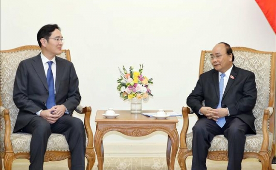 Thủ tướng Nguyễn Xuân Phúc đề nghị Tập đoàn Samsung tiếp tục mở rộng phạm vi, quy mô đầu tư, đưa Việt Nam trở thành "cứ điểm" lớn nhất toàn cầu của...
