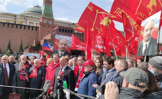 Theo phóng viên tại Mátxcơva, đoàn người mang theo cờ đỏ búa liềm, cờ Komsomol, ảnh Lenin đi bộ từ tượng đài Nguyên soái Zhukov tới Lăng Lenin, kính cẩn...
