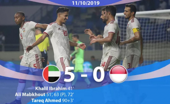 Trận đấu muộn tại bảng G đã kết thúc với chiến thắng 5 – 0 của ĐT Các tiểu vương quốc Ả rập thống nhất trước đội tuyển Indonesia.