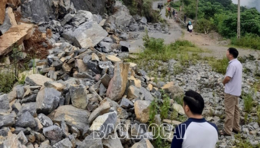 Sạt lở đất gây ách tắc giao thông trên Quốc lộ 4D qua huyện Mường Khương