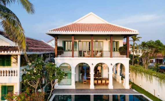 Biệt thự mang phong cách Đông Dương (Quảng Nam) nằm ngay sát ruộng lúa nên mỗi buổi chiều chị Vân Anh và gia đình được ngắm hoàng hôn, chìm đắm trong...