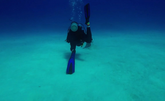 Các thợ lặn từ tổ chức WildCreatures mạo hiểm tiếp cận một con cá ó sao để ghi lại hành vi kiếm ăn của con vật dưới đáy đại dương.