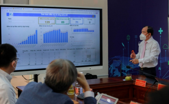 Ông Trương Gia Bình, Chủ tịch FPT, đánh giá nhờ chuyển đổi số và ứng dụng công nghệ, Quận 7 trở thành hình mẫu trong chống dịch của TP HCM.