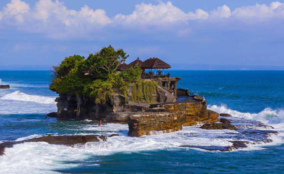 Ngôi đền Tanah Lot nằm trên một hòn đảo rộng hơn 1,2 hecta, nơi người dân phải đợi đến khi thuỷ triều rút mới có thể đặt chân đến.