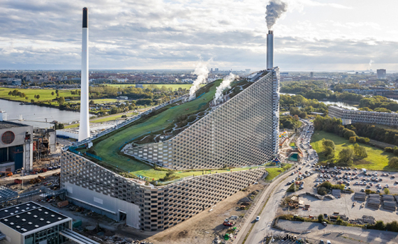 Nhà máy điện Copenhill (Đan Mạch), nơi cung cấp điện cho 150.000 ngôi nhà, xây dốc trượt ván dài 450 m trên mái.