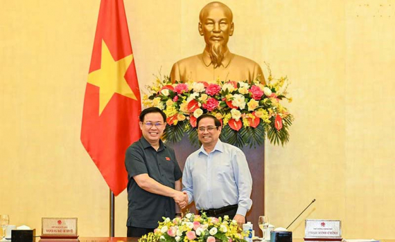 Ngày 17/7, tại Nhà Quốc hội, các đồng chí: Vương Đình Huệ, Ủy viên Bộ Chính trị, Chủ tịch Quốc hội, Bí thư Đảng đoàn Quốc hội và Phạm Minh Chính, Ủy viên...