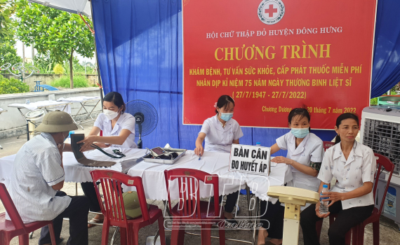 Kỷ niệm 75 năm ngày Thương binh - Liệt sĩ (27/7/1947 - 27/7/2022), Hội Chữ thập đỏ huyện Đông Hưng phối hợp với Huyện đoàn tổ chức khám bệnh, tư vấn sức...