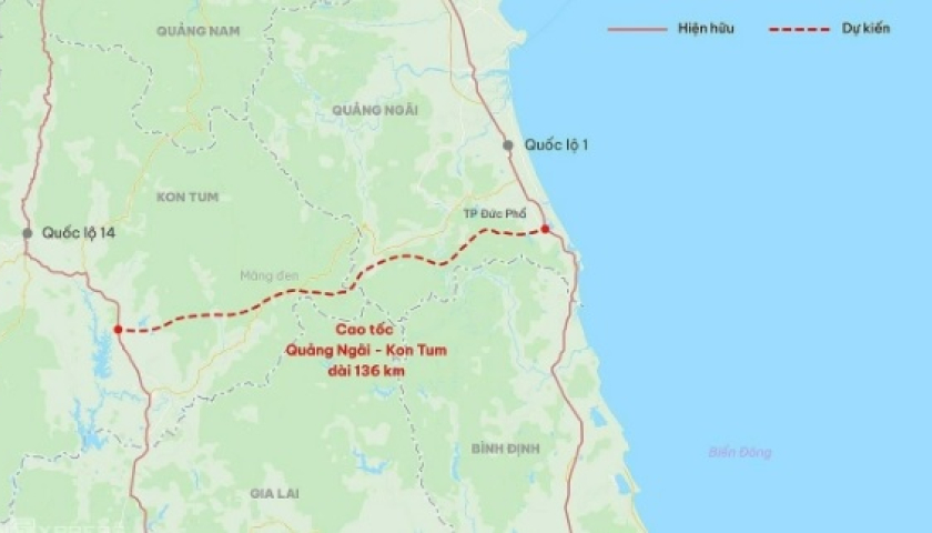 Bộ trưởng Xây dựng vừa giao Ban Quản lý dự án 85 lập Báo cáo nghiên cứu tiền khả thi dự án cao tốc Quảng Ngãi - Kon Tum dài 136 km, vốn đầu tư 35.395 tỷ...