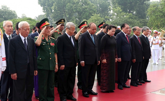 Lãnh đạo Ðảng, Nhà nước, MTTQ Việt Nam đặt vòng hoa, tưởng niệm các Anh hùng liệt sĩ và vào Lăng viếng Chủ tịch Hồ Chí Minh