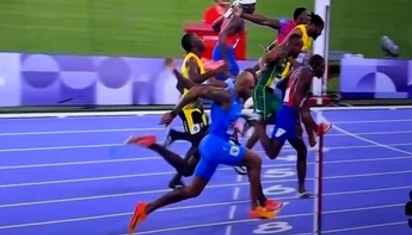 Cận cảnh VĐV Mỹ về đích nhanh hơn đối thủ 5 phần nghìn giây ở cự li chạy 100m