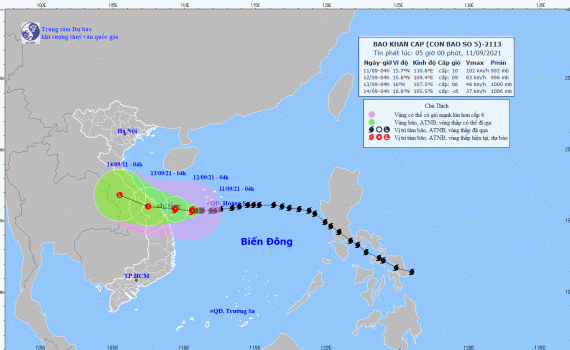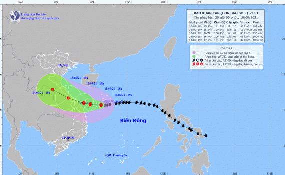 Tin bão khẩn cấp (Cơn bão số 5) hồi 4h ngày 11/09/2021