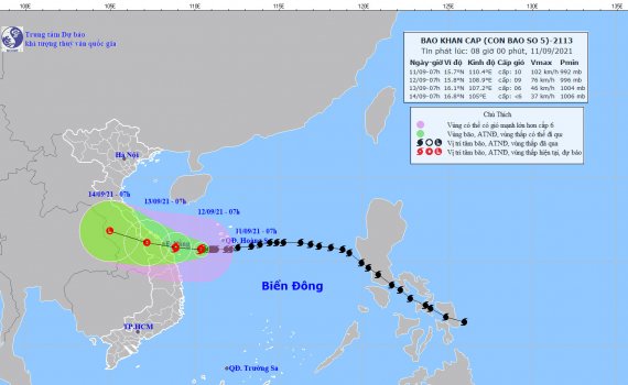 Tin bão khẩn cấp (Cơn bão số 5) hồi 7h ngày 11/09/2021