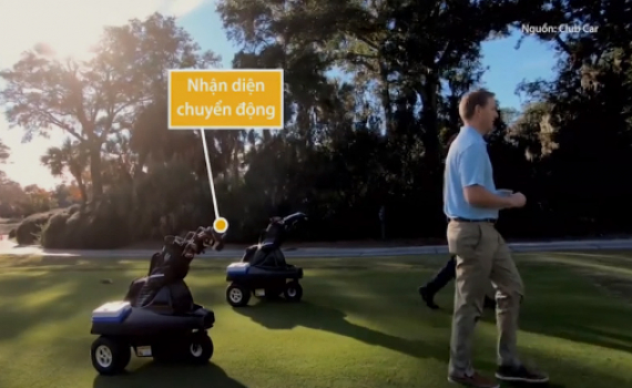Trang bị cảm biến, GPS... giúp robot trợ lý sân golf tự di chuyển và điều chỉnh tốc độ theo chủ nhân, luôn bám sát khoảng cách 1m.