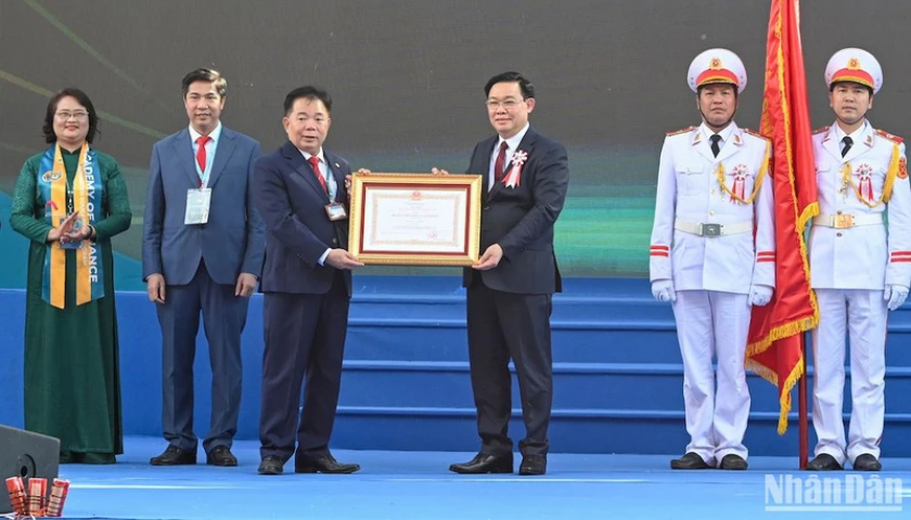 Sáng 19/11, Giáo sư, Tiến sĩ, Nhà giáo Ưu tú Vương Đình Huệ, Ủy viên Bộ Chính trị, Chủ tịch Quốc hội dự Lễ kỷ niệm 60 năm thành lập, đón nhận Huân chương...