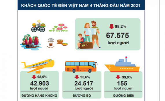 Theo số liệu Tổng cục Thống kê công bố ngày 29/4, khách quốc tế đến nước ta trong tháng 4/2021 tăng nhẹ so với tháng 3-2021 nhưng vẫn giảm 25,8% so với...