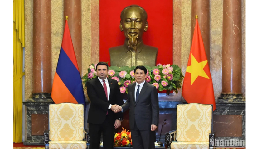 Tiếp Chủ tịch Quốc hội Armenia Alen Simonyan, chiều 20/11, tại Phủ Chủ tịch, Chủ tịch nước Lương Cường khẳng định, Việt Nam nhất quán coi trọng quan hệ...