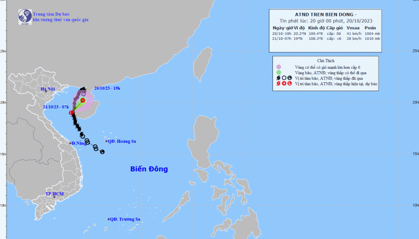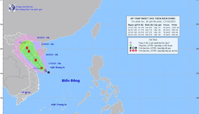 Theo Trung tâm Dự báo Khí tượng thủy văn Quốc gia, sức gió mạnh nhất vùng gần tâm bão mạnh cấp 14-15, giật trên cấp 17, tốc độ 5-10km/h.