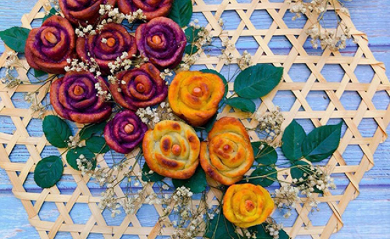 Thay vì chiên khoai lang theo cách thông thường, bạn có thể tạo hình bông hoa hồng để món ăn thêm hấp dẫn.